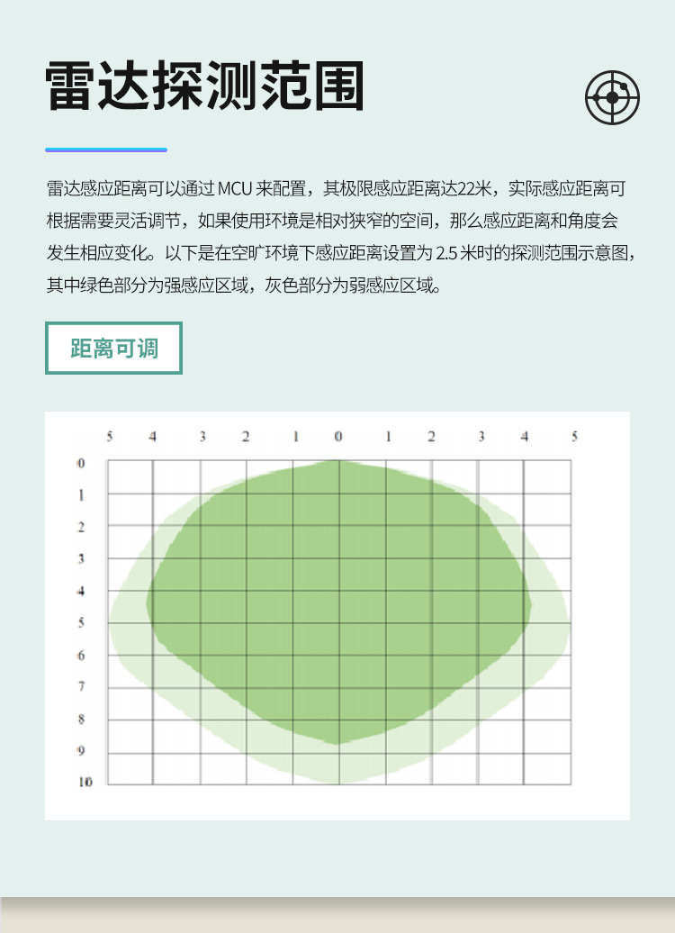 FR58L4HS-2020L 是飞睿智能推出的高性能 5.8G 雷达传感器,雷达模块利用多普勒原理,通过天线发射高频电磁波并接收初期反射波,以此判断覆盖范围内物体的移动,给出相应电信号。模块尺寸 20*20MM 该芯片集成了 5.8G 微波电路、中频放大电路以及信号处理器,集成度高且生产一致性好,模块内置 32 位 MCU 和收发天线,大大提高了传感器的感应性能。雷达模块感应距离远、角度广、无死区、透镜和透镜老化问题不受温度、湿度、气流、灰尘、噪声、亮暗等影响。模块内植入过滤雨水树叶算法,能有效过滤掉雨水树叶的误触发,广泛应用于智慧照明、智能门锁、智慧安防、智慧家电等多个领域。